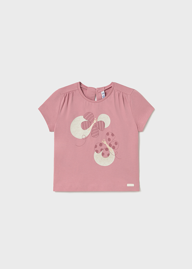 Μπλούζα με κοντό μανίκι, σε ροζ χρώμα και τύπωμα πεταλούδες, για κορίτσι 6-24 μηνών.