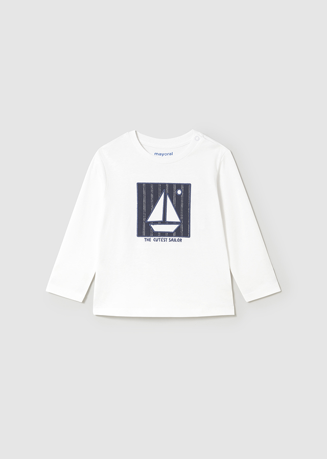 Μπλούζα με μακρύ μανίκι, σε λευκό χρώμα και κέντημα σε μπλε απόχρωση, για αγόρι 6-24 μηνών