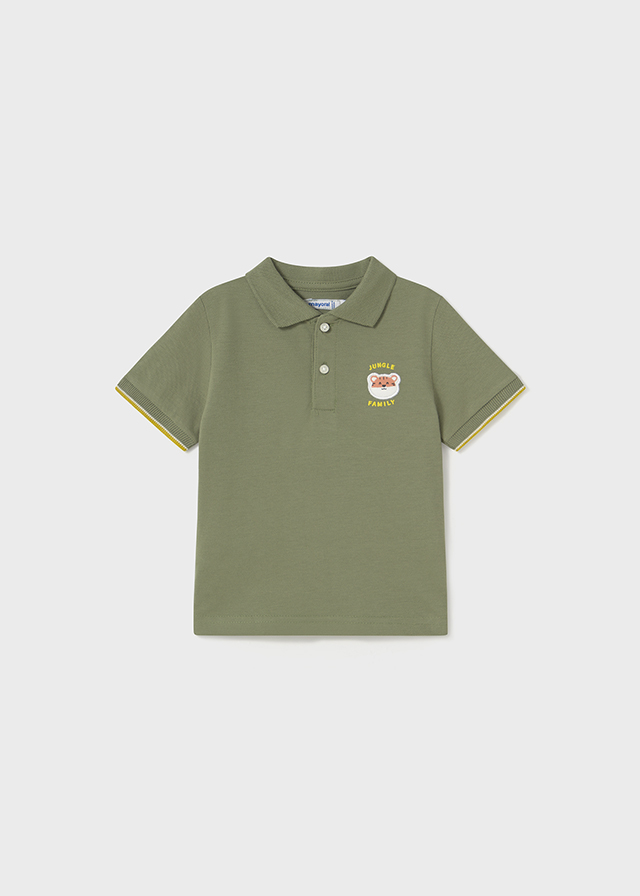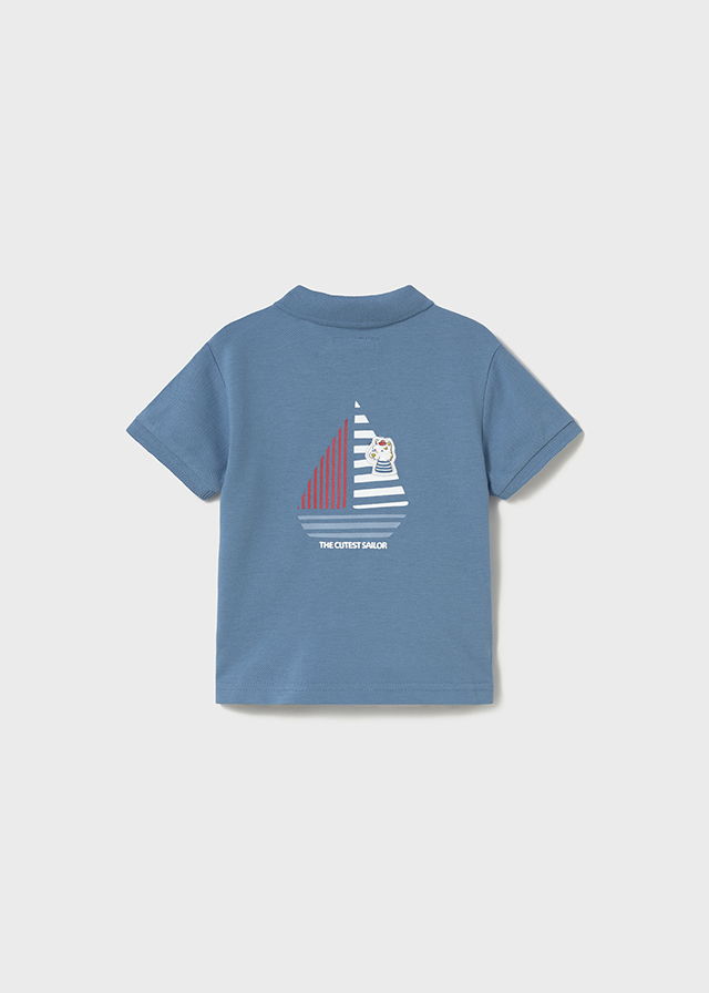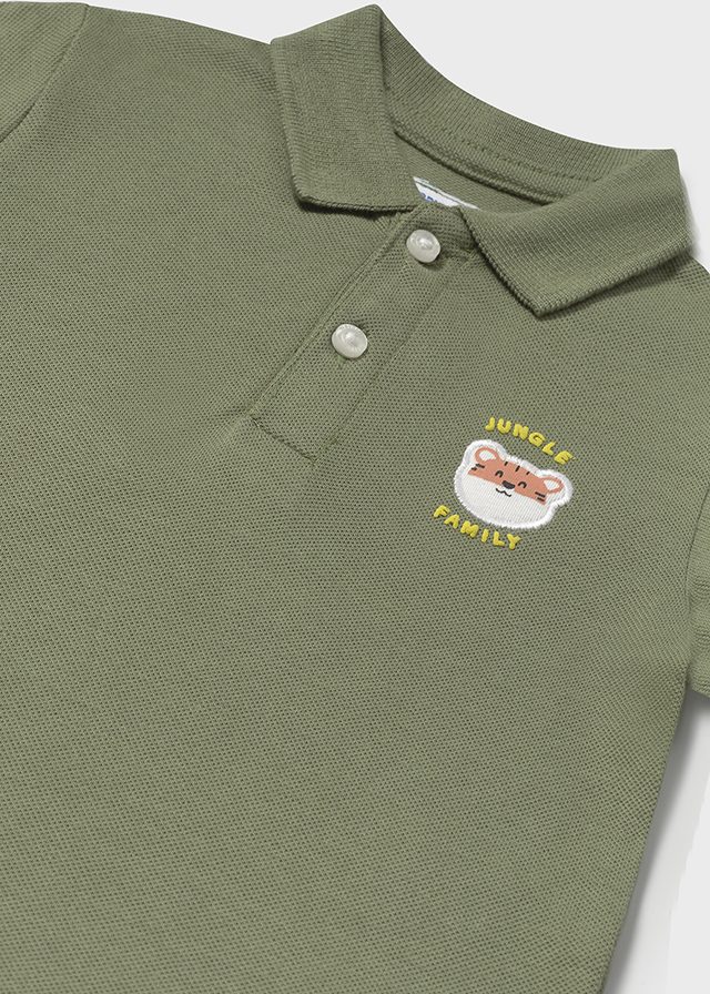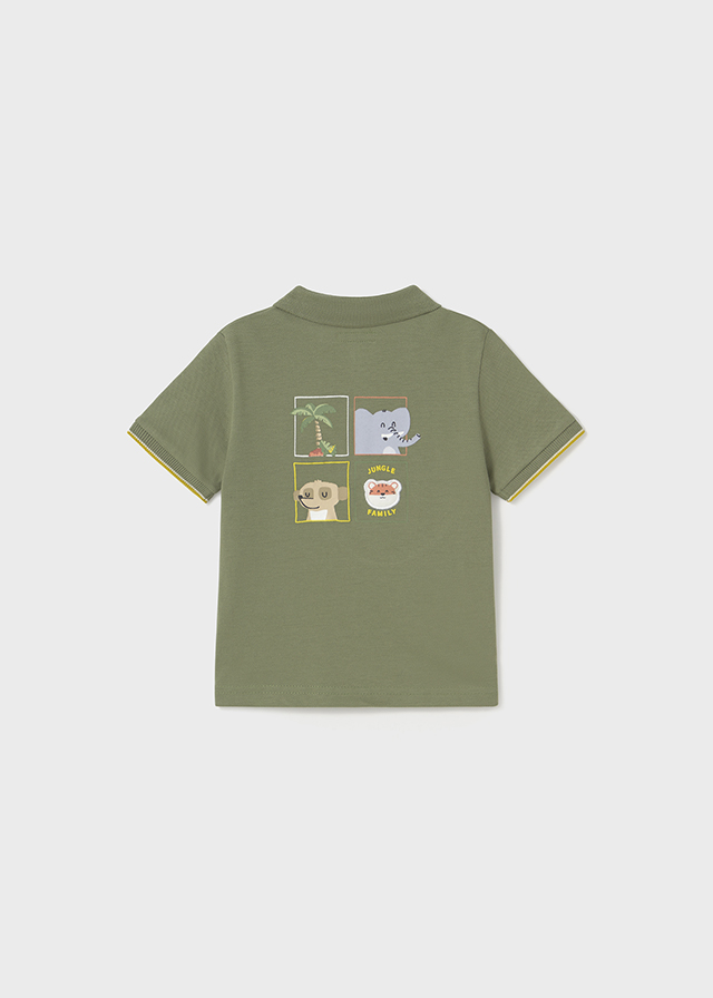 Μπλούζα με κοντό μανίκι και γιακά πόλο, σε δύο αποχρώσεις -μπλε ανοιχτό και πράσινο -, με διακριτικό τύπωμα στο μπροστινό μέρος της μπλούζας και τύπωμα στο πίσω μέρος της μπλούζας, για αγόρι 6-24 μηνών