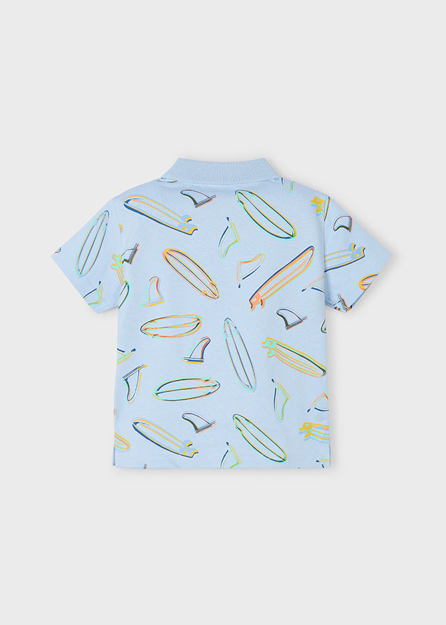 Μπλούζα πόλο με κοντό μανίκι σε σιελ χρώμα, με allover τύπωμα, για αγόρι 2-8 ετών