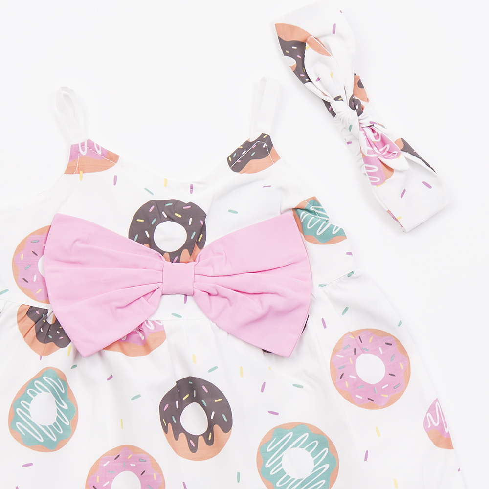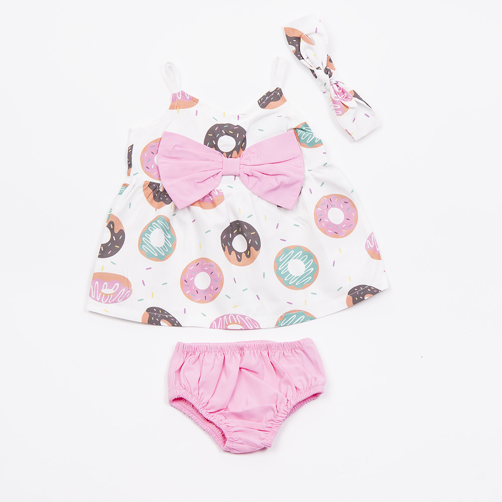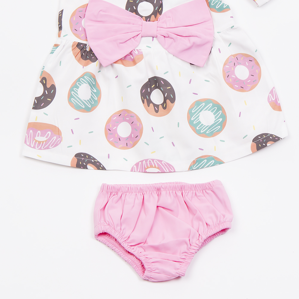 Σετ φόρεμα σε λευκό χρώμα, με allover τύπωμα, ροζ φιόγκο και κορδέλα και βρακάκι σε ροζ χρώμα, για κορίτσι 3-24 μηνών