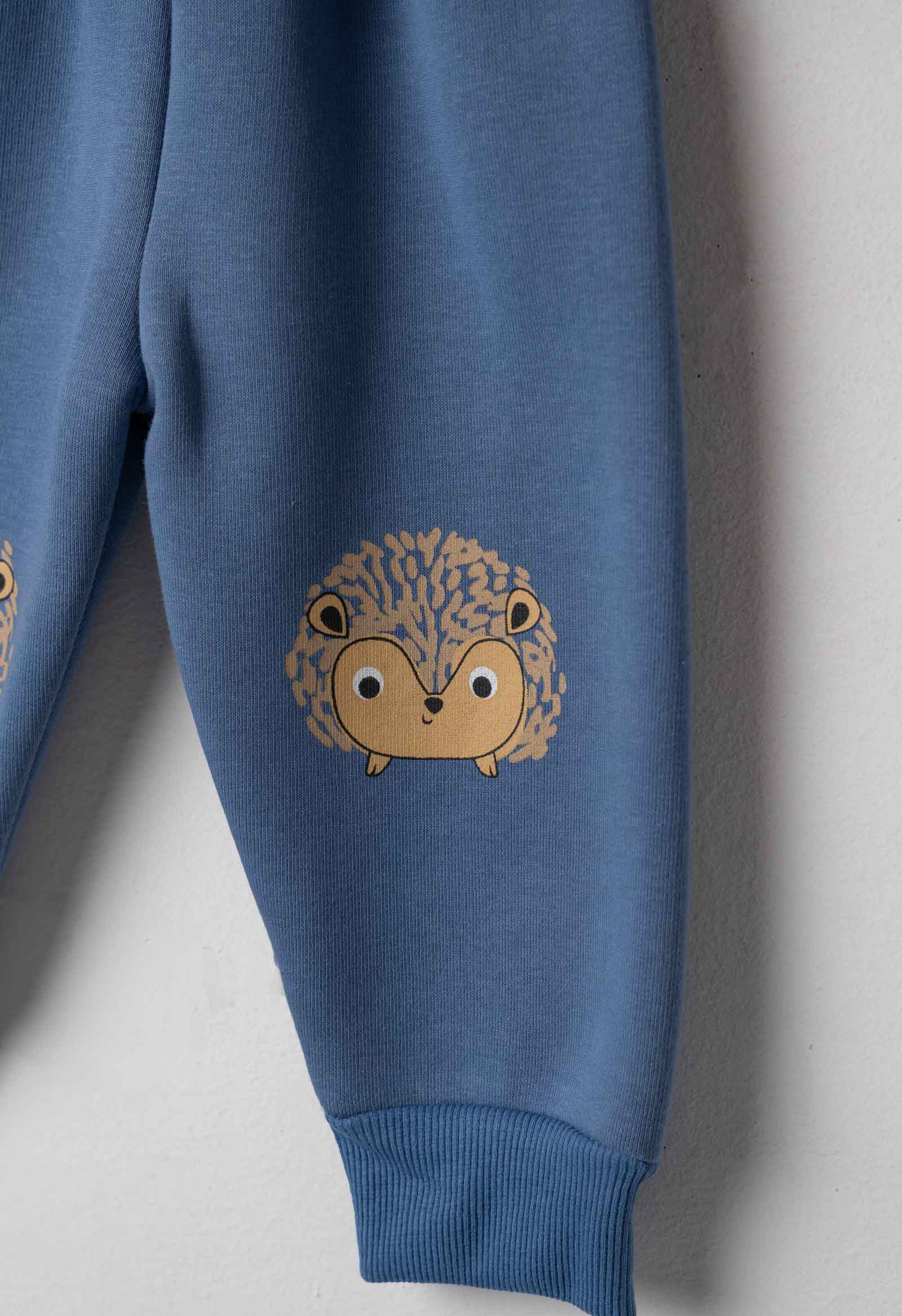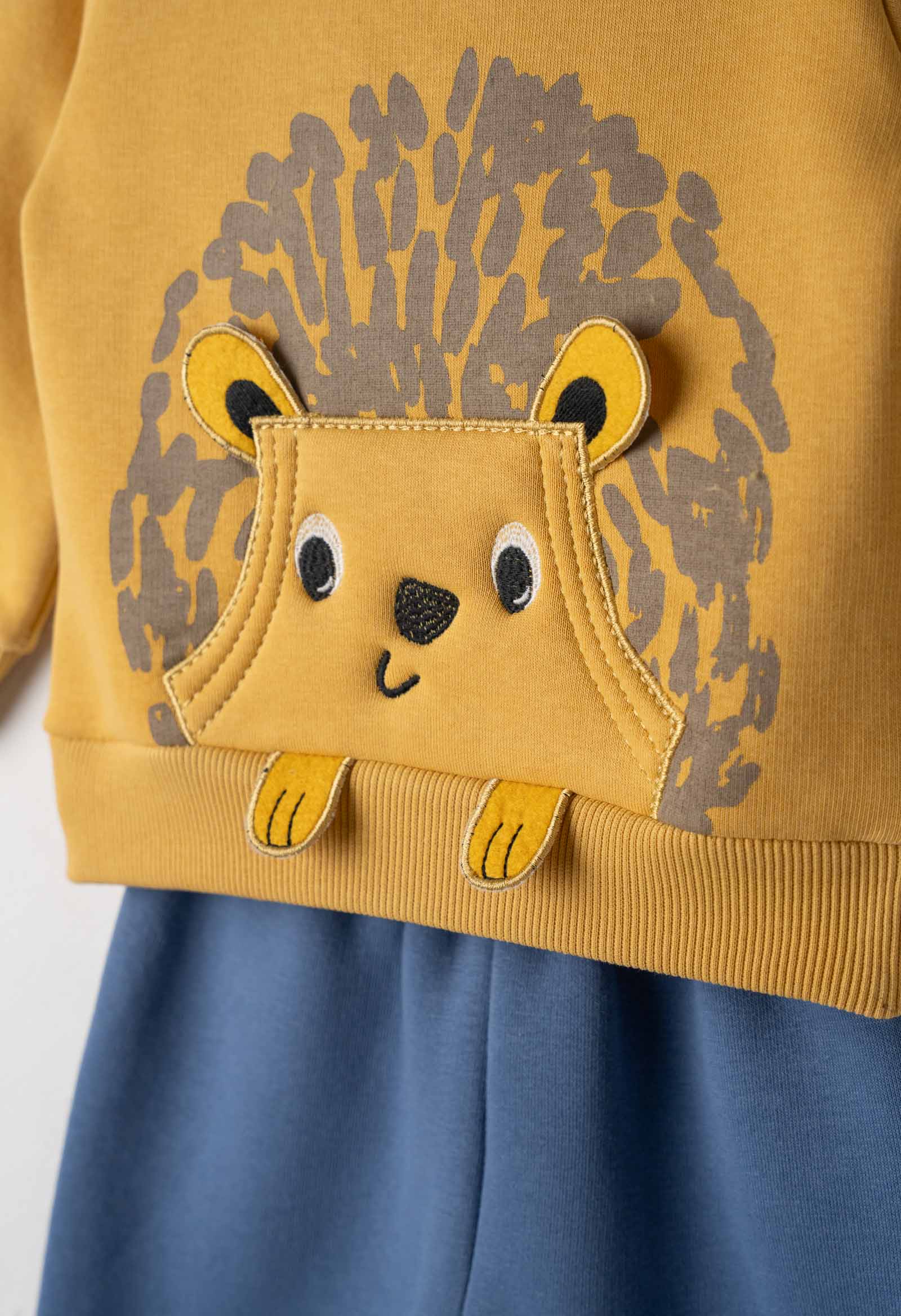 Σετ βρεφικό σετ για αγόρι 6-24 μηνών. Το σετ αποτελείται από παντελόνι φόρμας με επένδυση φλις σε μπλε ρουά χρώμα και μπλούζα φούτερ σε κίτρινο χρώμα με σχέδιο.