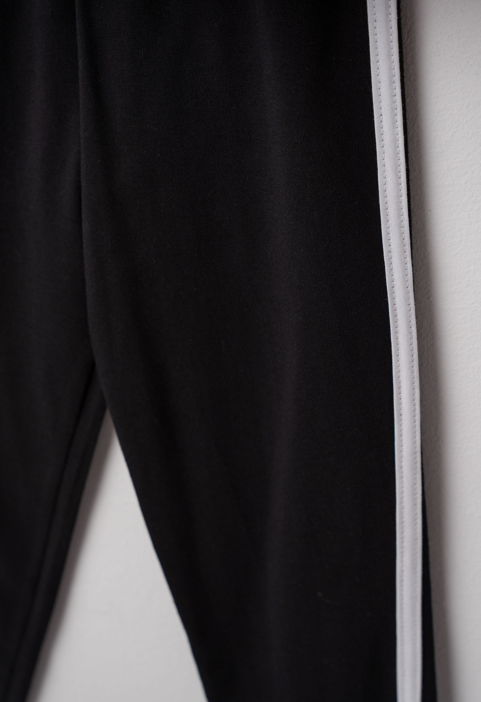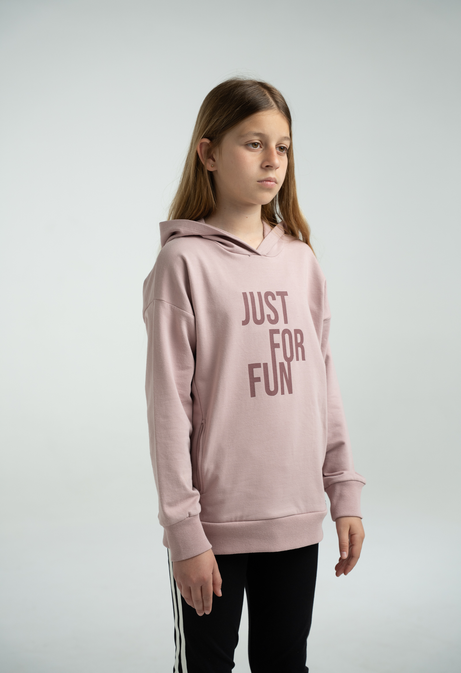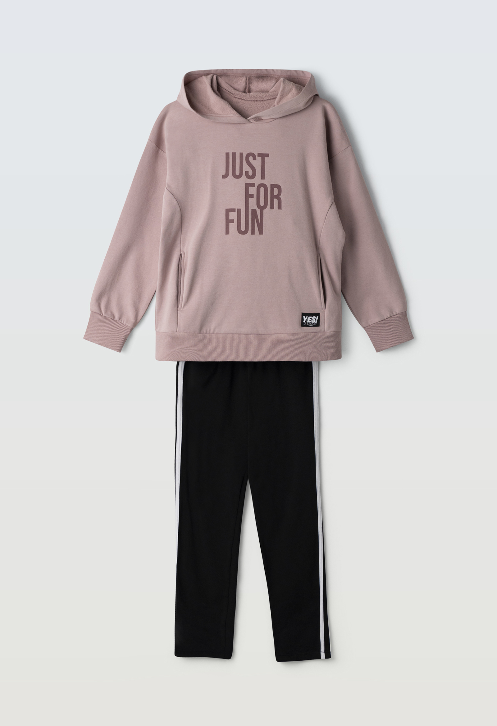 Σετ κολάν σε μαύρο χρώμα με λεπτομέρεια λευκή στο πλάι, και μπλούζα φούτερ με κουκούλα σε ροζ χρώμα και τύπωμα, για κορίτσι 6-16 ετών,