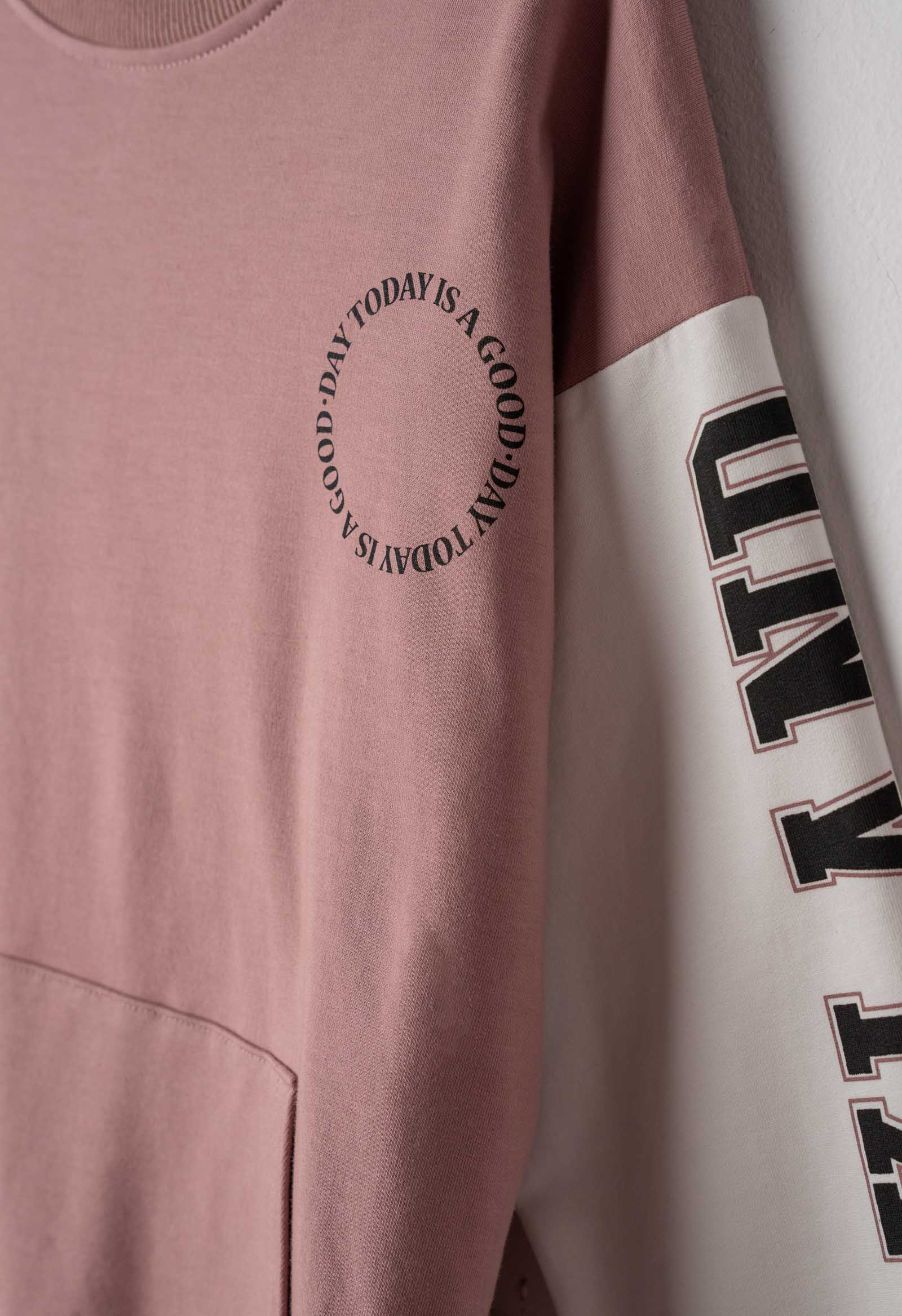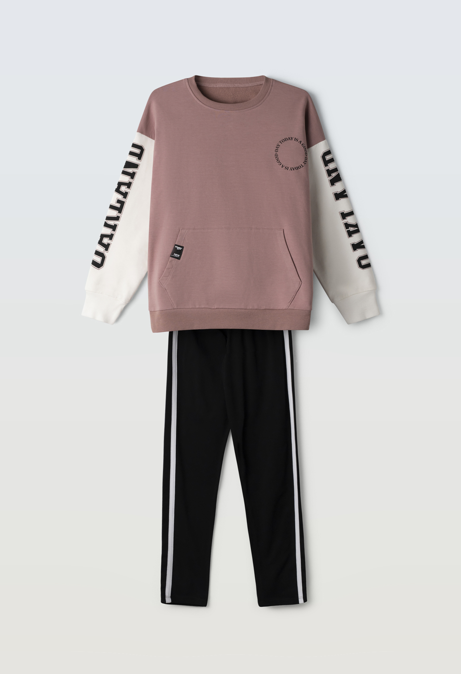 Σετ κολάν σε μαύρο χρώμα με λευκές λεπτομέρειες και μπλούζα φούτερ σε ροζ χρώμα με λεπτομέρειες σε λευκό και μαύρο ,για κορίτσι 6-16 ετών.
