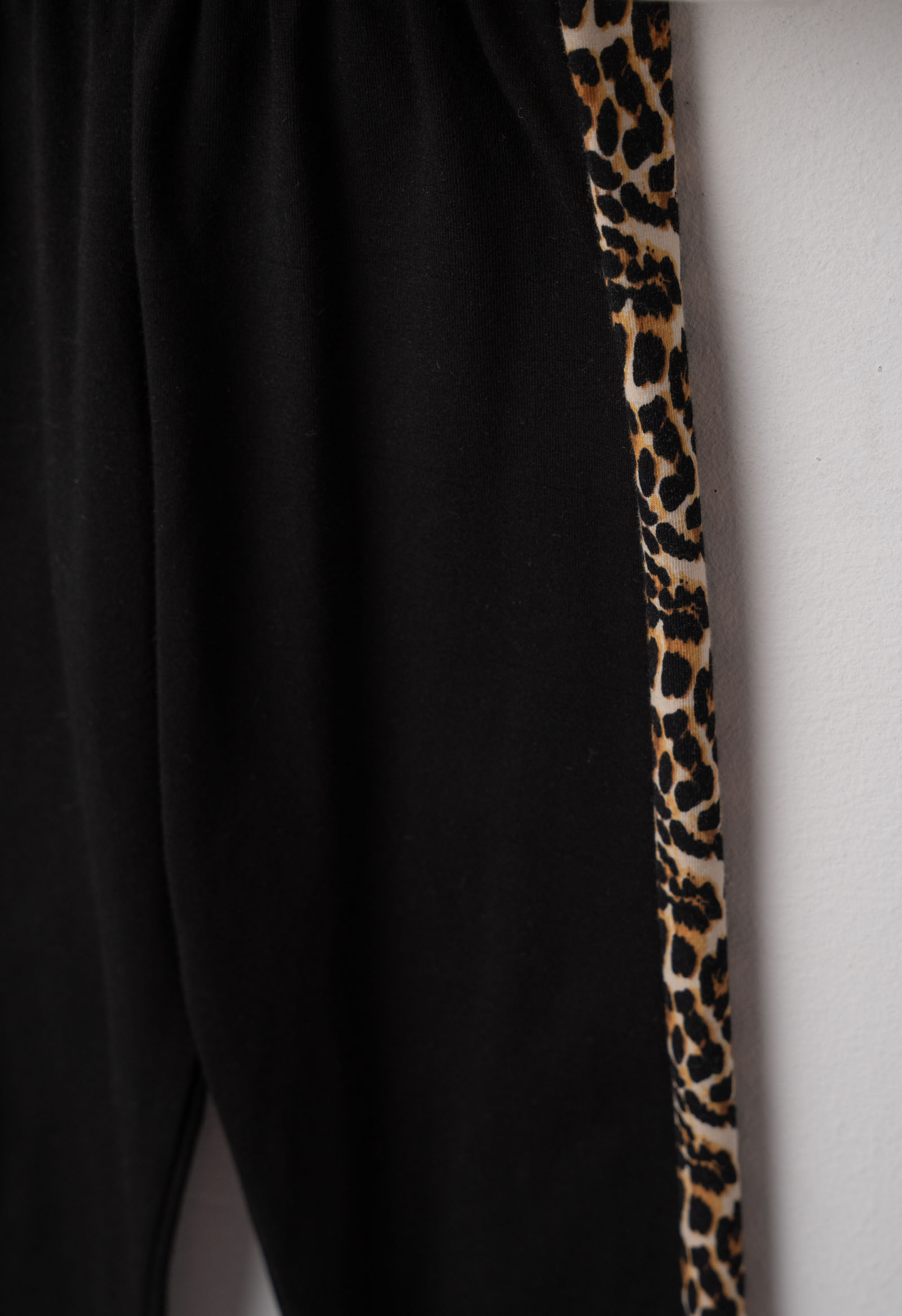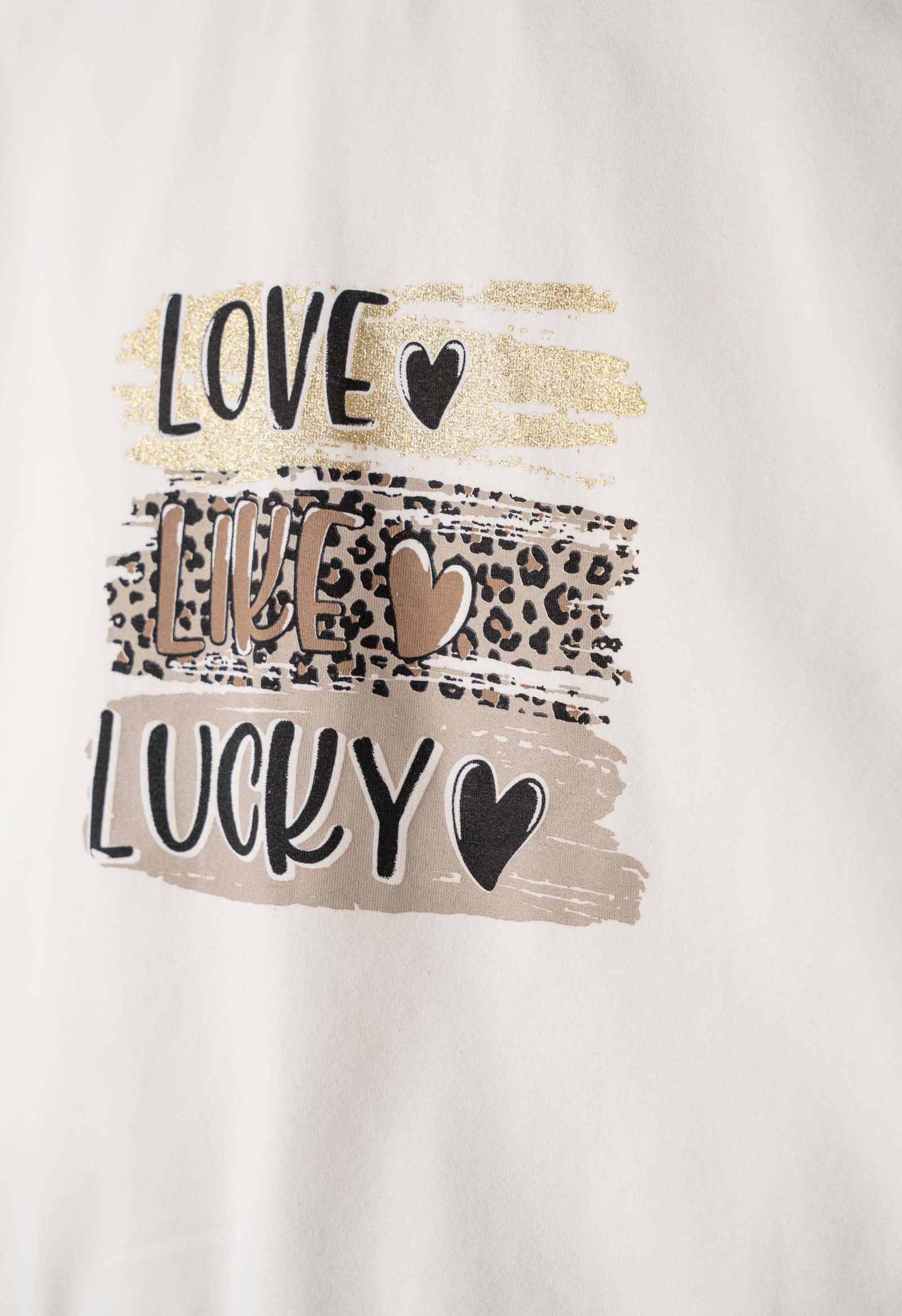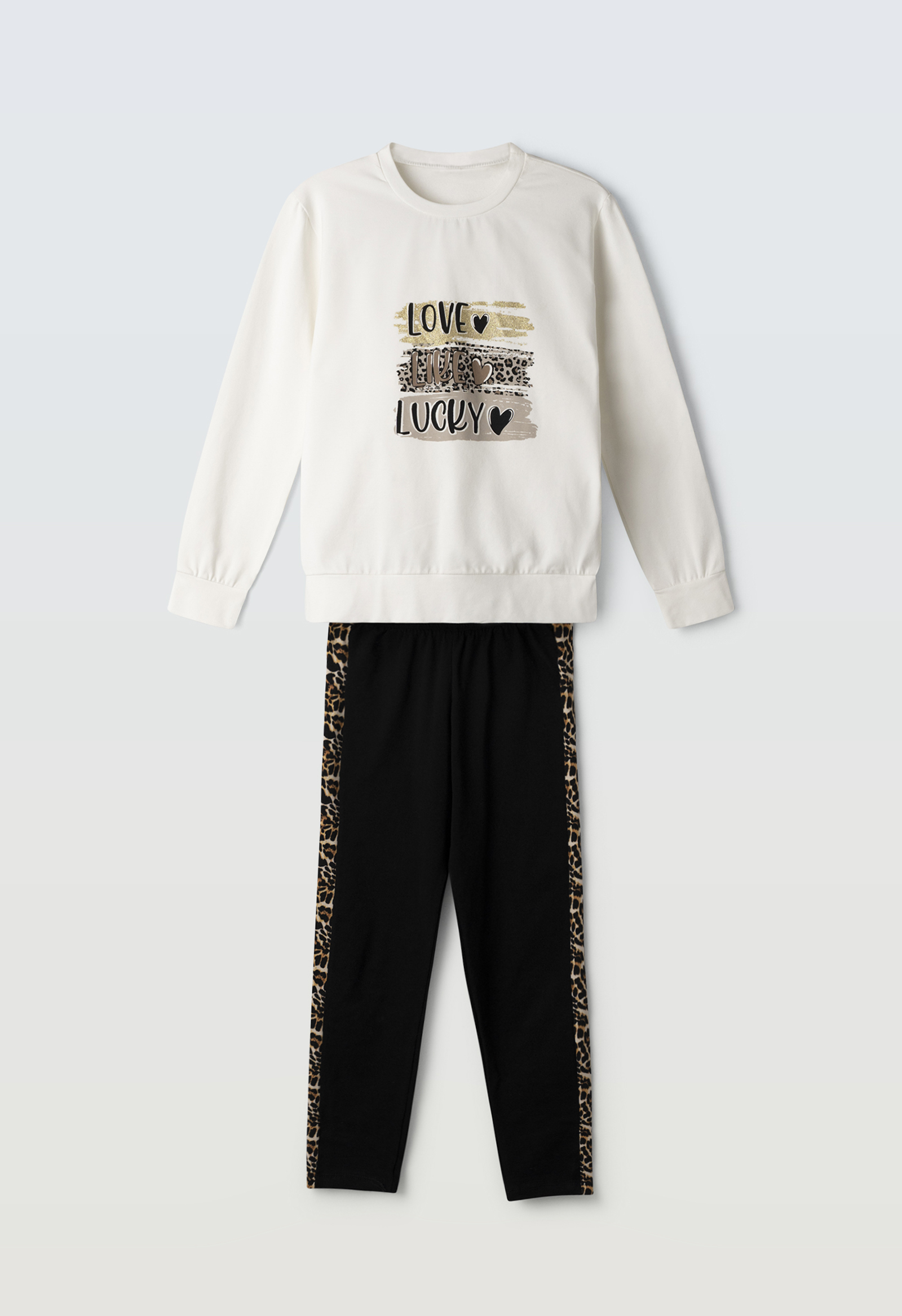 Σετ κολάν σε μαύρο χρώμα με λεπτομέρεια στο πλάι και μπλούζα σε εκρού χρώμα με τύπωμα, για κορίτσι 6-16 ετών.
