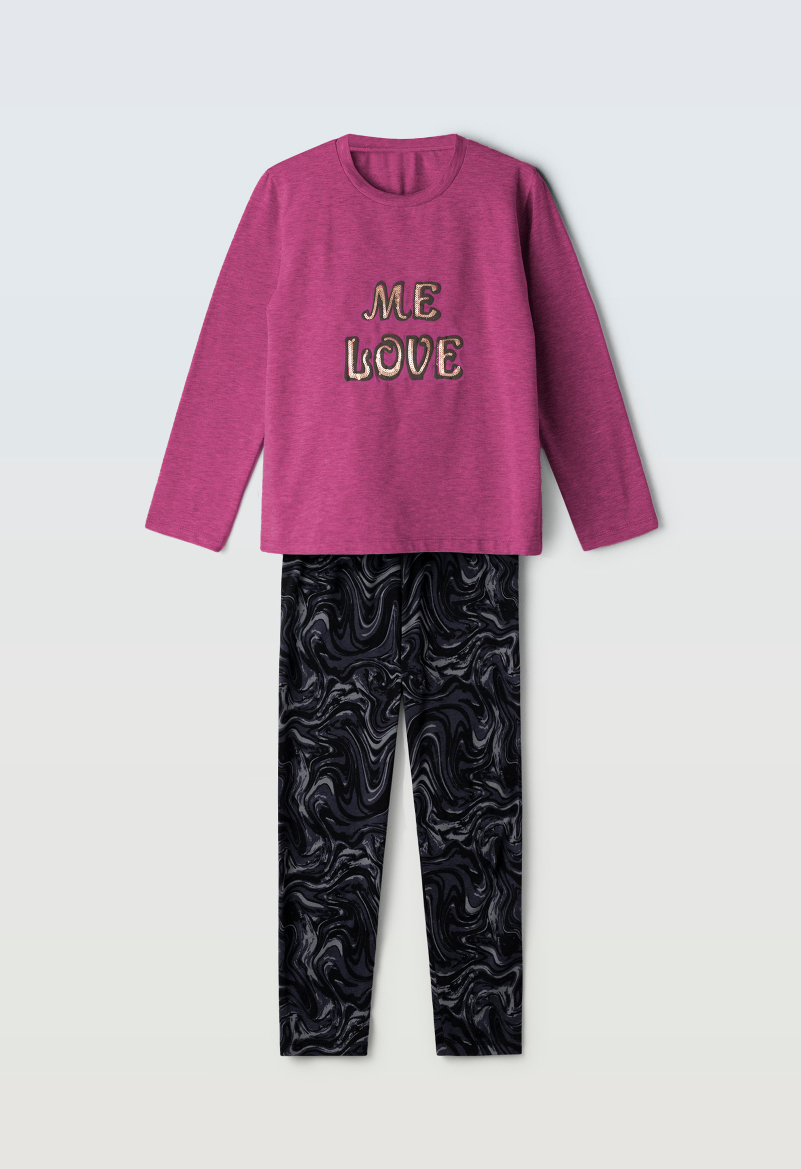 Σετ κολάν για κορίτσι 6-16 ετών. Το σετ αποτελείται από κολάν σε μαύρο χρώμα με allover τύπωμα και μπλούζα σε μωβ χρώμα