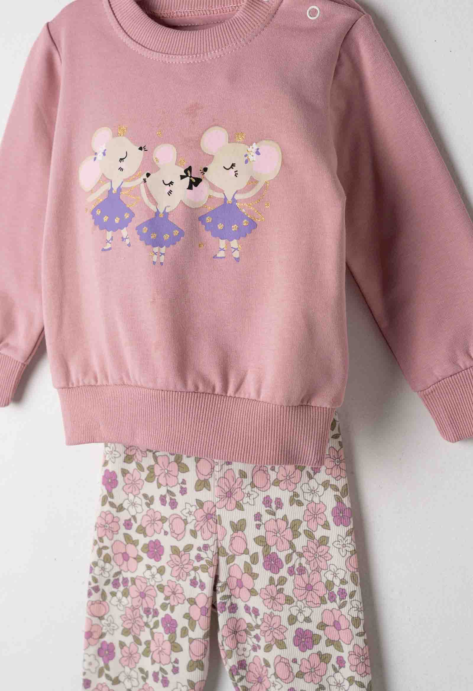 Σετ κολάν με allover flower print , ροζ φούτερ μπλούζα με τύπωμα και τσαντάκι, για κορίτσι 6-24 μηνών.