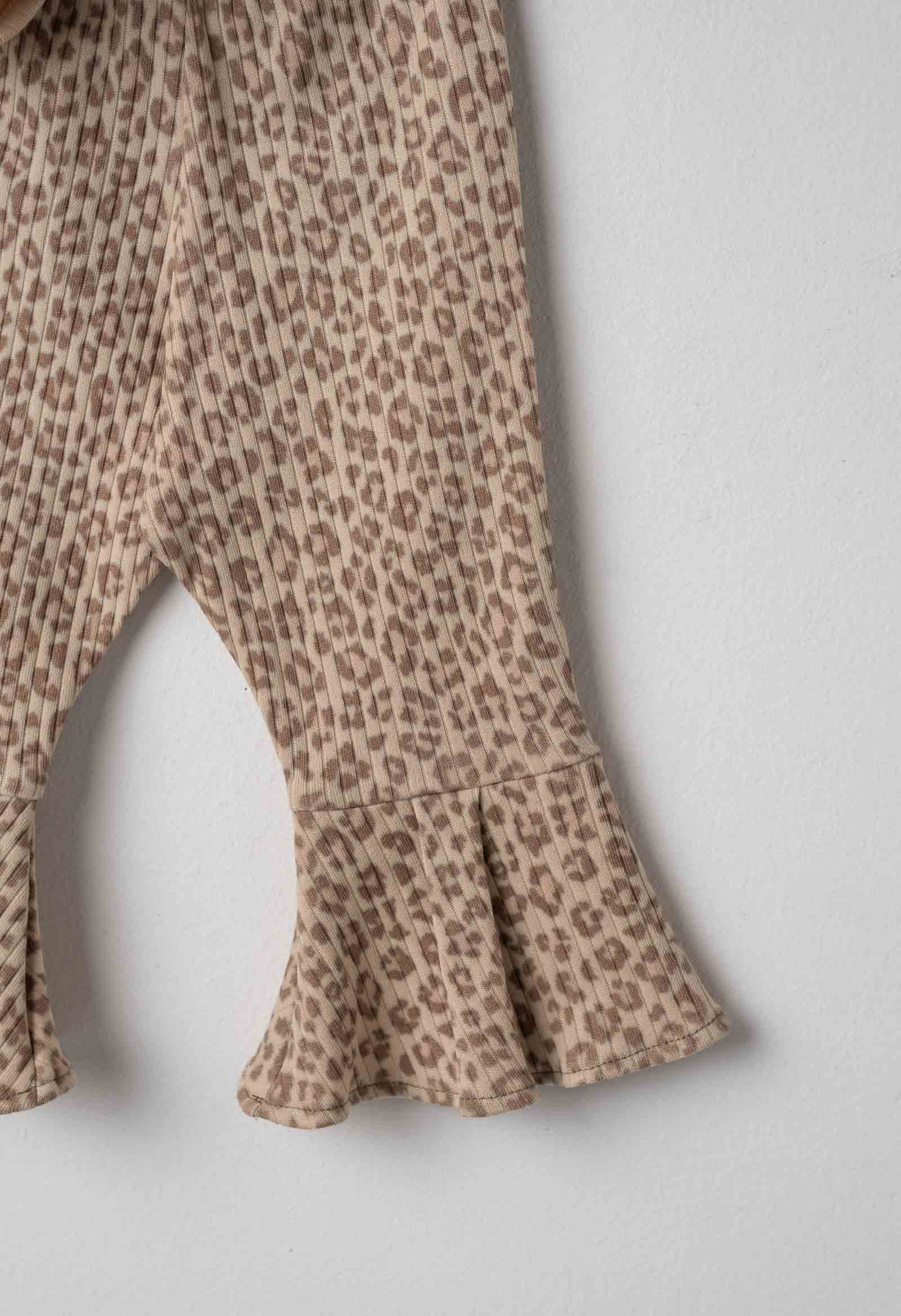 Σετ κολάν, σε μπεζ χρώμα με allover animal print, κορμάκι σε μπεζ χρώμα με σχέδιο και κορδέλα για τα μαλλιά, στην ίδια απόχρωση με το κολάν, για κορίτσι 6-24 μηνών