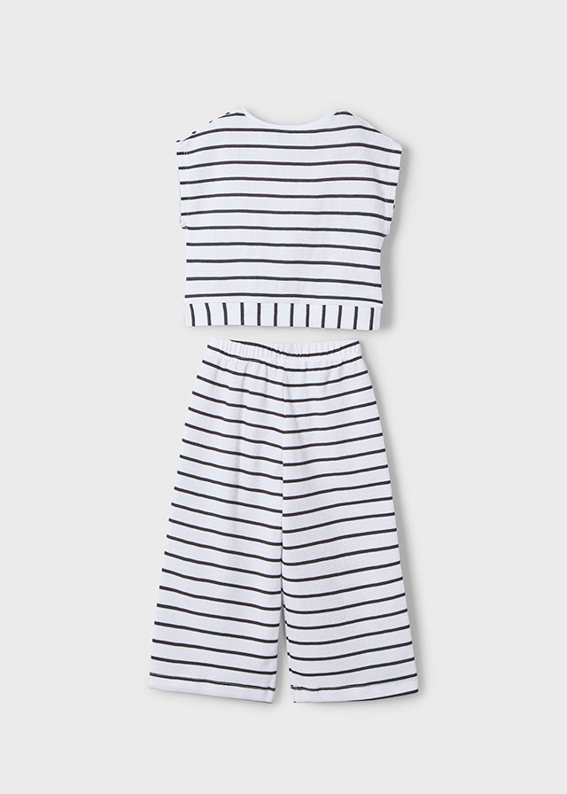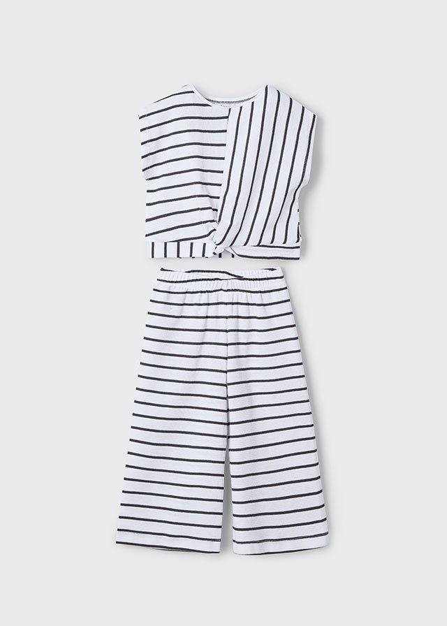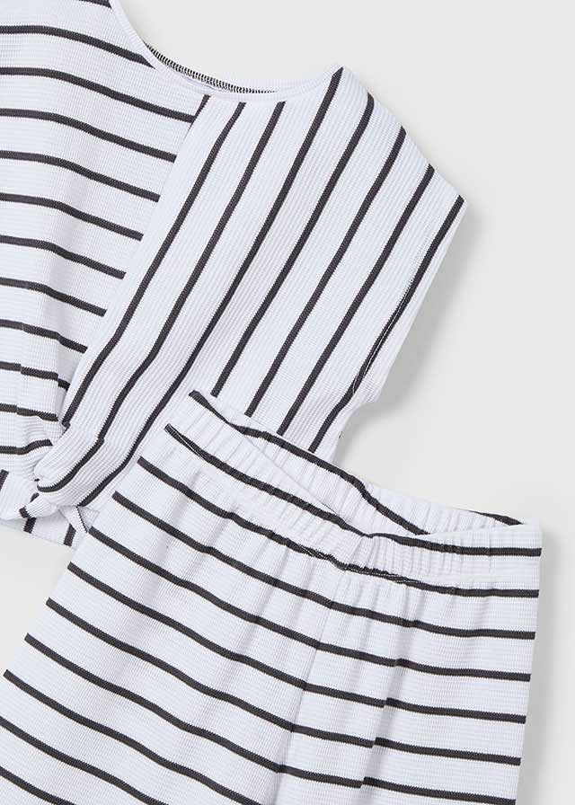 Σετ παντελόνα και τοπ με κοντό μανίκι, σε λευκό χρώμα και allover τύπωμα με ρίγα σε μαύρο χρώμα, για κορίτσι 2-8 ετών