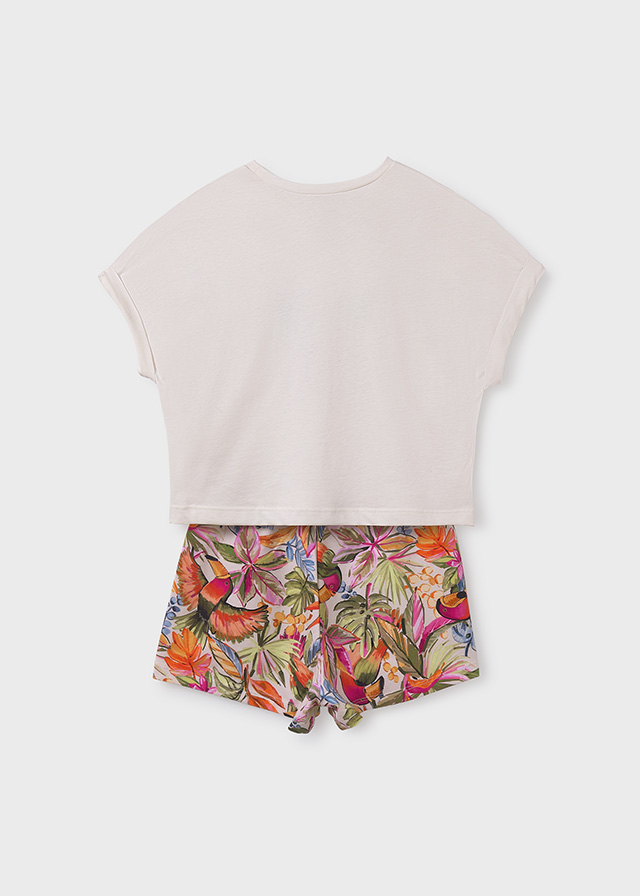 Σετ σορτς σε floral σχέδιο και μπλούζα με κοντό μανίκι, σε λευκό χρώμα, με τύπωμα, για κορίτσι 8-18 ετών