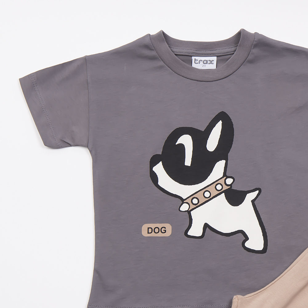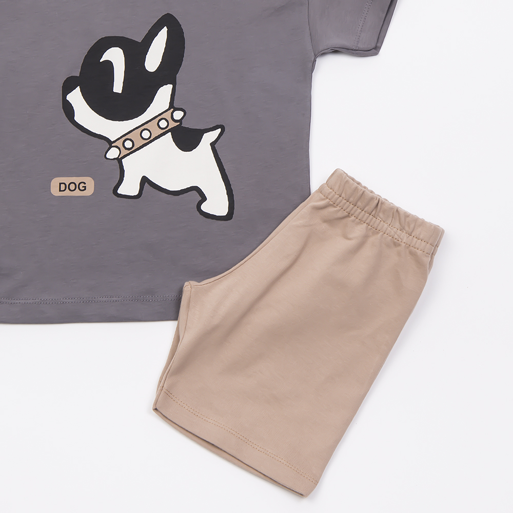 Σετ σορτς σε μπεζ χρώμα και μπλούζα σε ανθρακί χρώμα με τύπωμα, για αγόρι 1-6 ετών