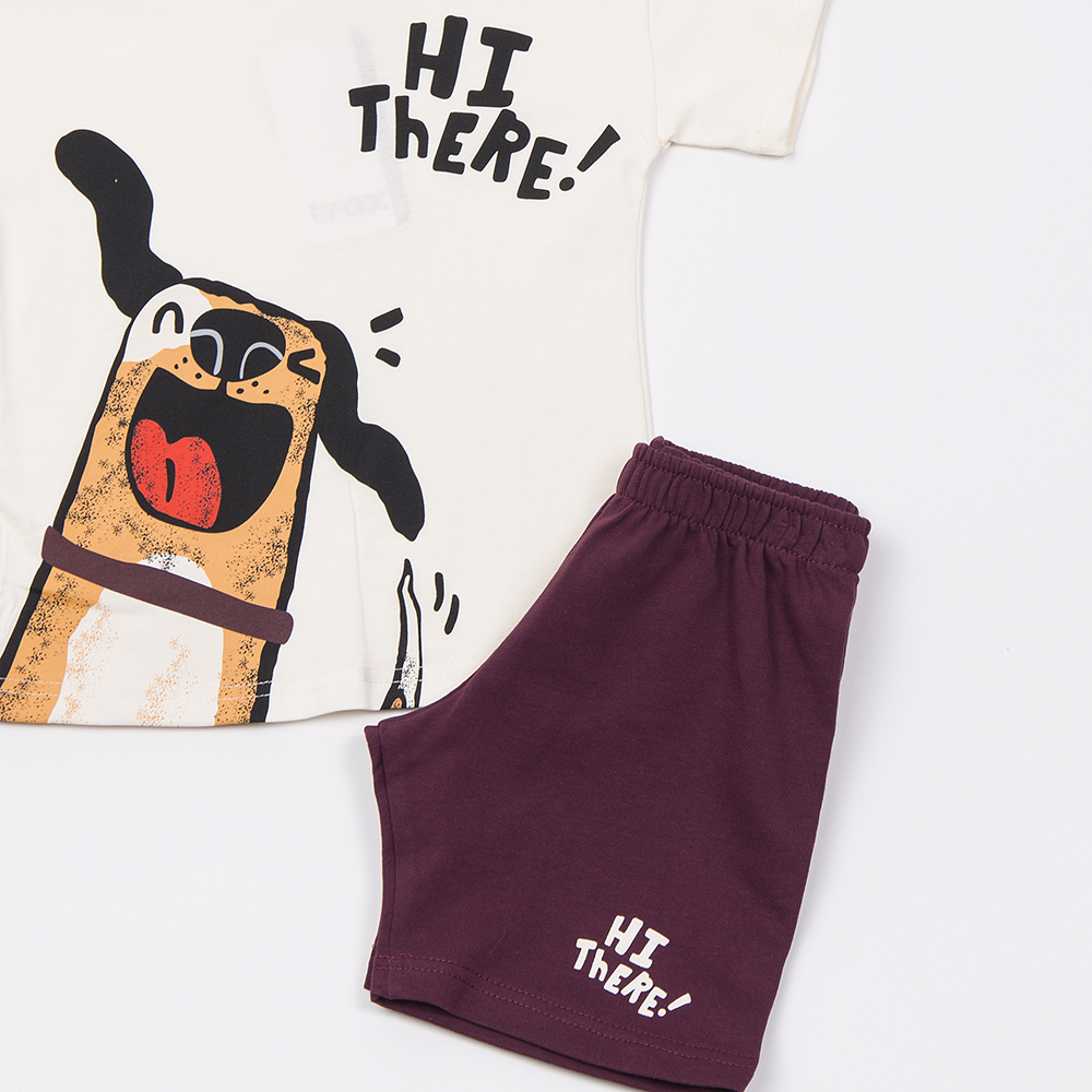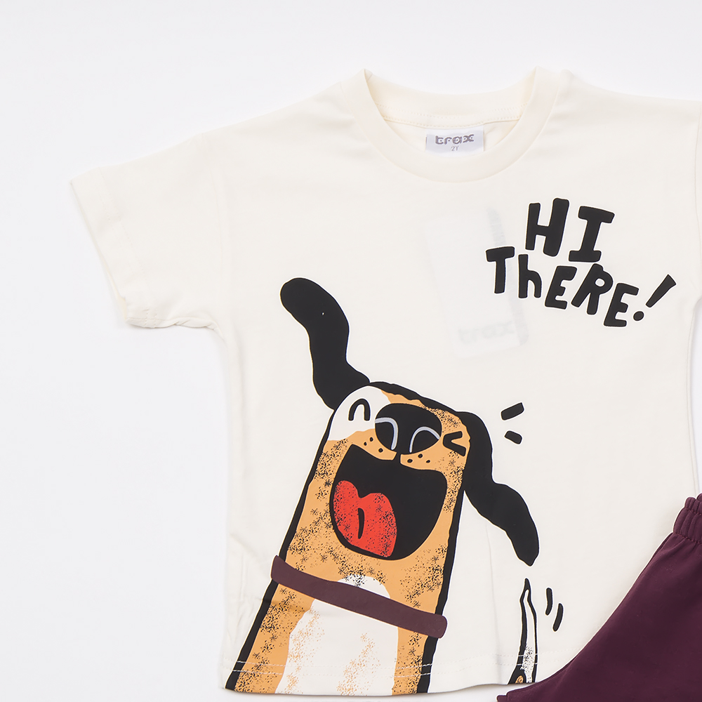 Σετ σορτς σε μπορντό χρώμα και μπλούζα σε εκρού χρώμα με τύπωμα, για αγόρι 1-6 ετών