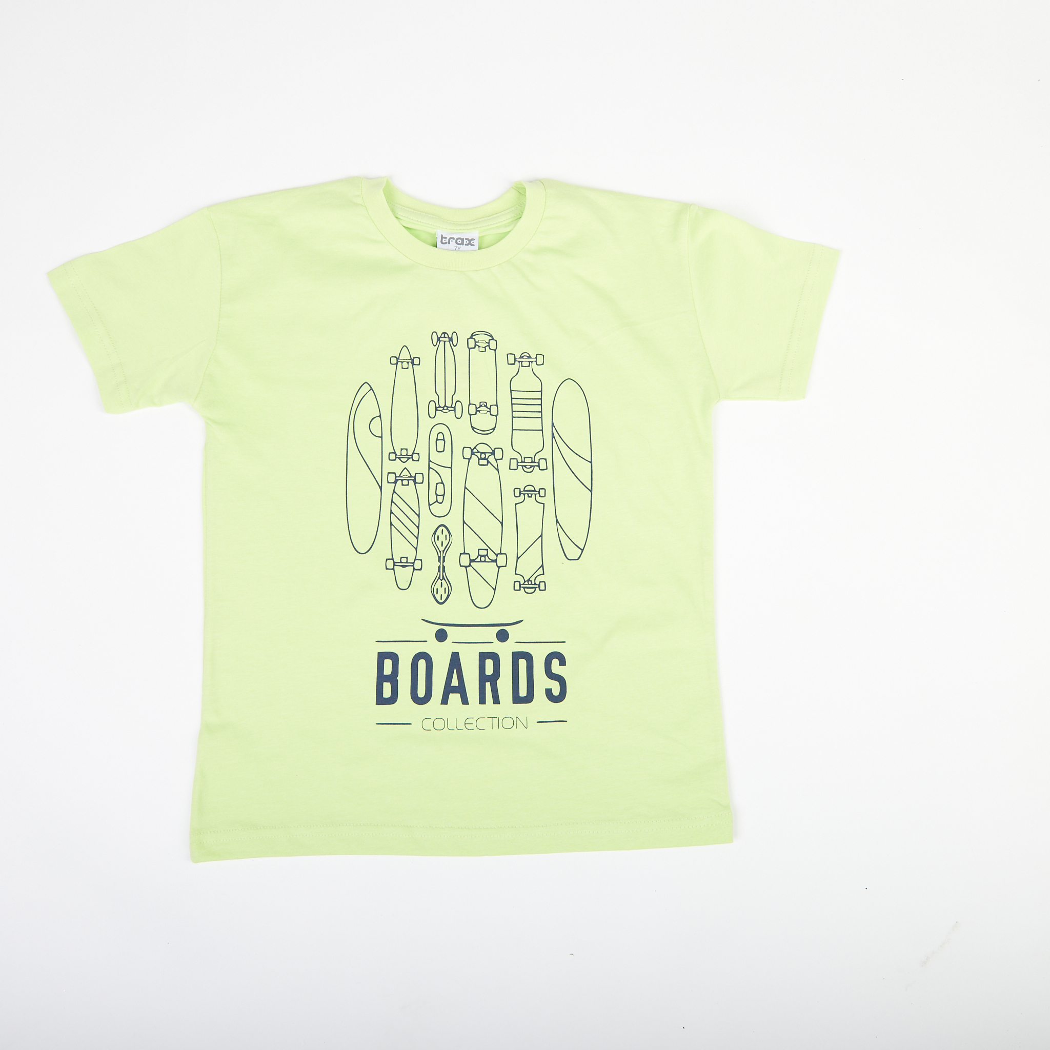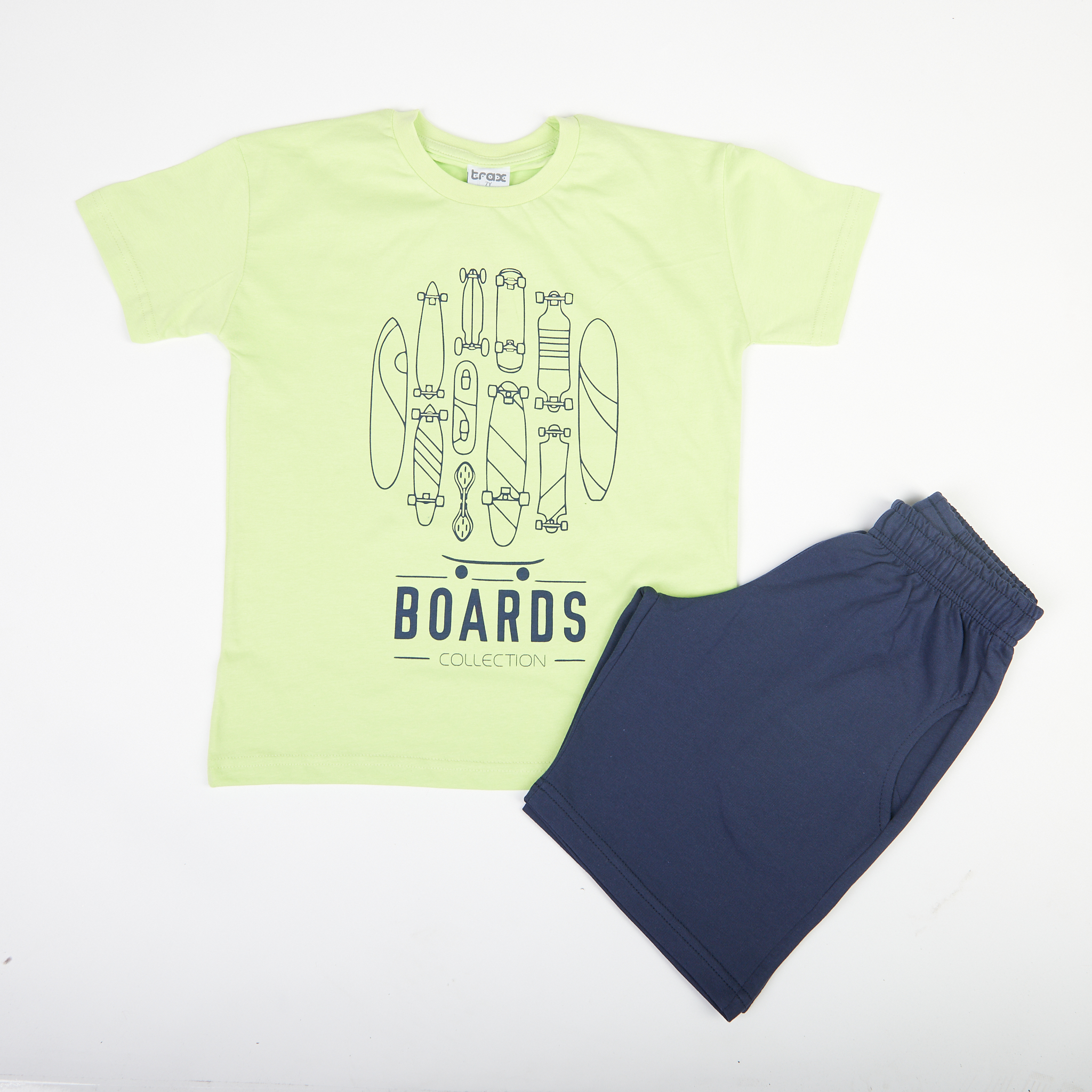 Σετ βερμούδα σε μπλε χρώμα και μπλούζα σε λάιμ χρώμα με τύπωμα, για αγόρι – ετών.