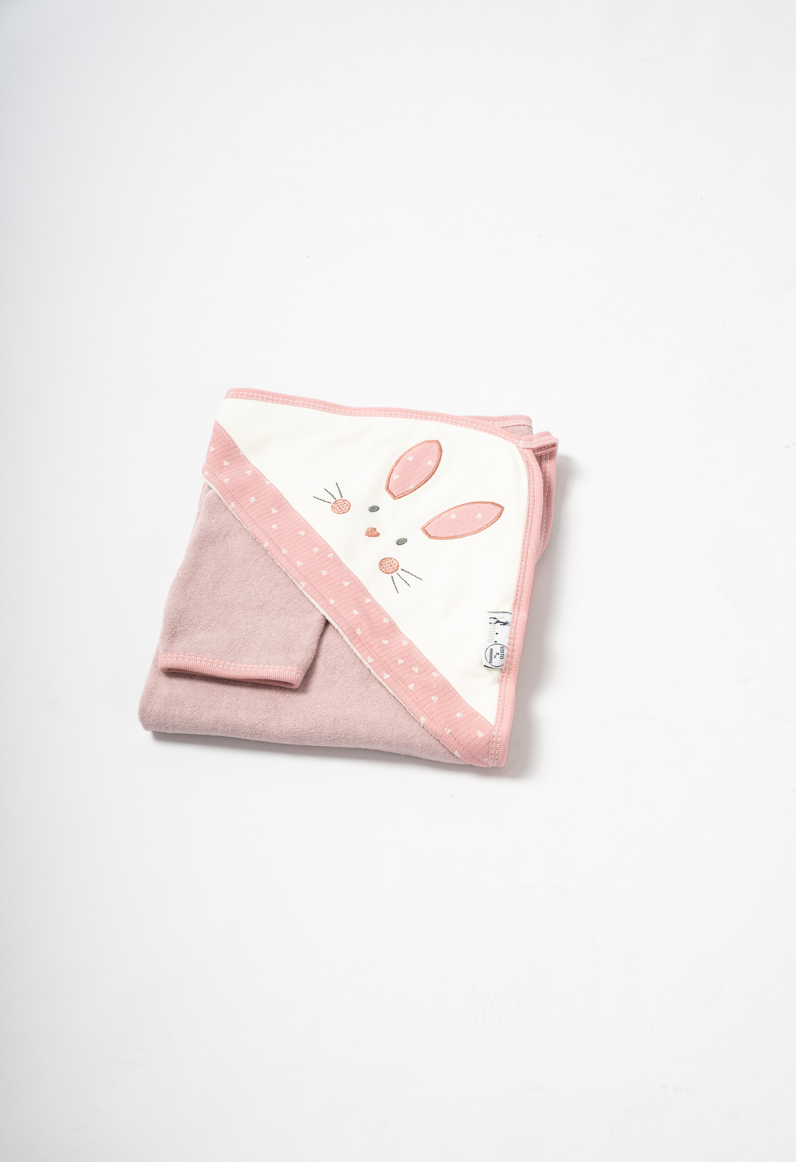 Βρεφική μπουρνουζοπετσέτα για κορίτσι, σε ροζ χρώμα με λευκές λεπτομέρειες