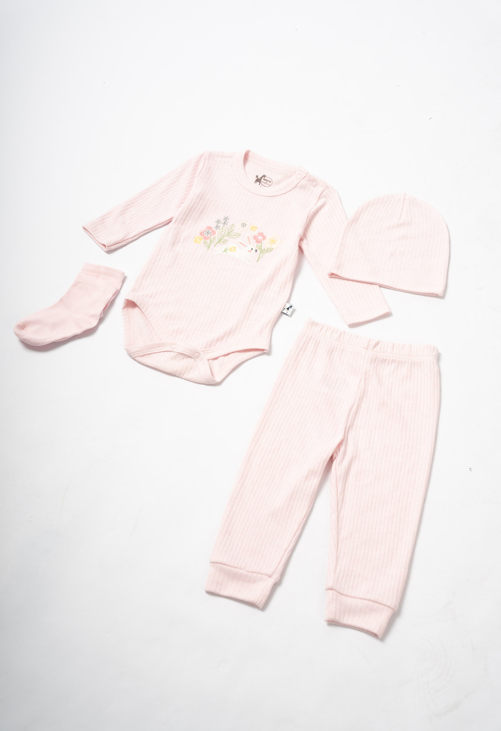 Βρεφικό σετ με κολάν, ολόσωμο φορμάκι, σκούφο και καλτσάκια, σε ροζ χρώμα, για κορίτσι 0-12 μηνών